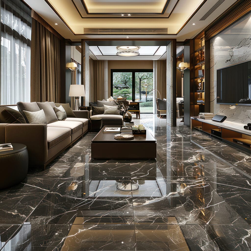 Witte marmertegels met grijze aders zijn al jaren populair, maar ook donkere marmerlooks met subtiele glans winnen terrein. Ze passen zowel in klassieke als moderne interieurs en geven elke ruimte een vleugje hotel-chic.