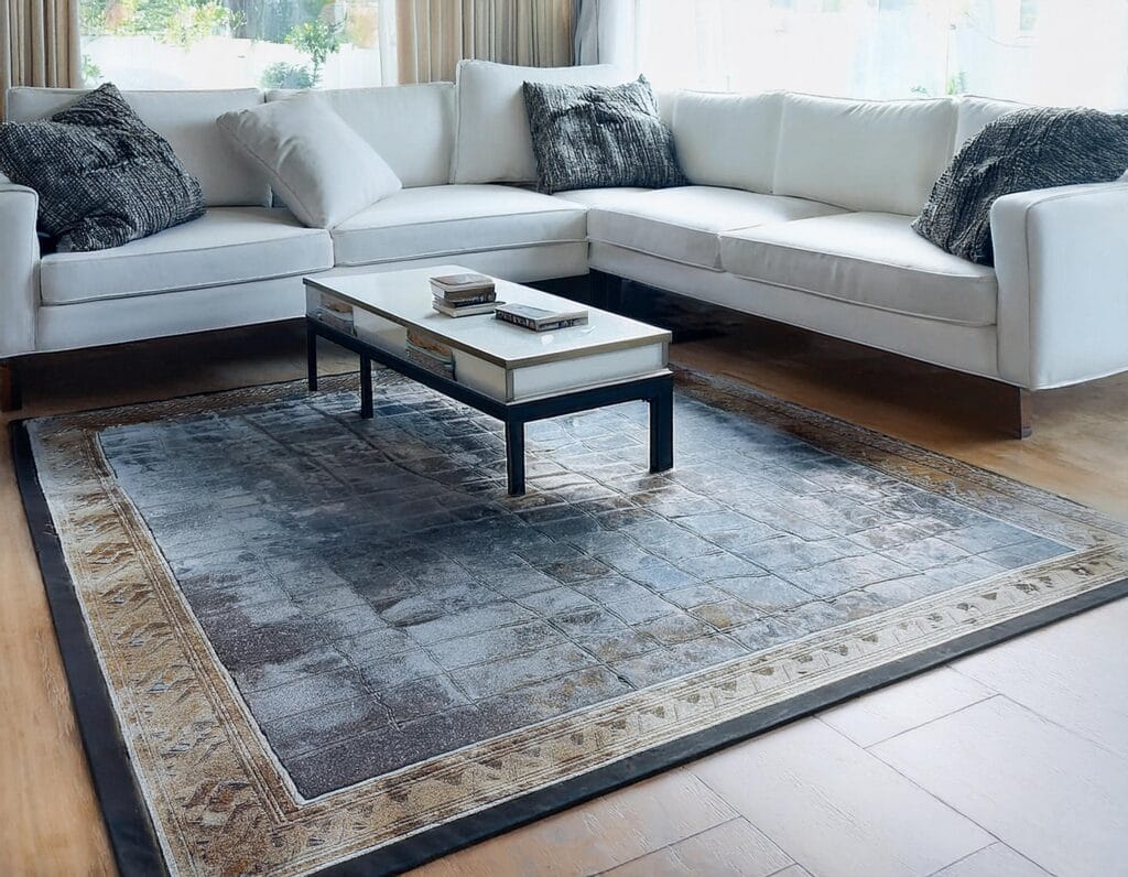 Sfeervolle woonkamer met decoratieve Portugese vloertegels in een klassiek patroon. De keramische tegels geven de ruimte een authentieke en warme uitstraling. Perfect voor een tijdloos interieur en ideaal als vloertegels in de woonkamer.